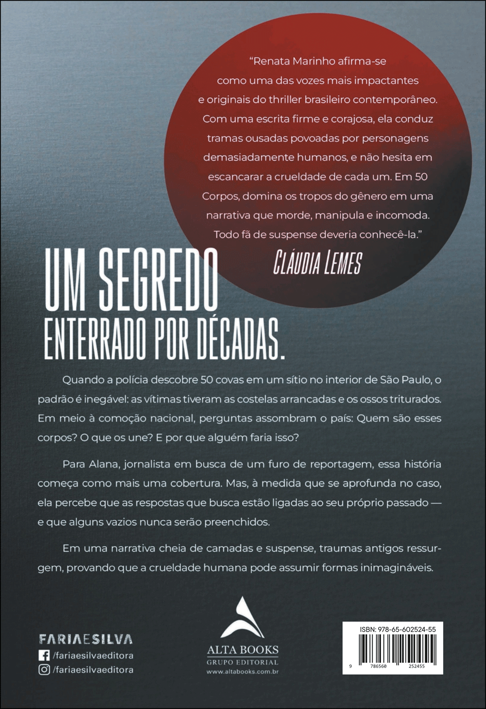 A jornalista investigativa Alana e o delegado Martim conduzem os leitores em uma investigação perturbadora que desvenda esse mistério. Com um enredo repleto de reviravoltas e uma viagem no tempo – de 1983 a 2023 -, o livro não apenas revela a história dos personagens, mas também pinta um retrato vívido do Brasil e do mundo, mergulhando na cultura, na política e no entretenimento das últimas décadas.