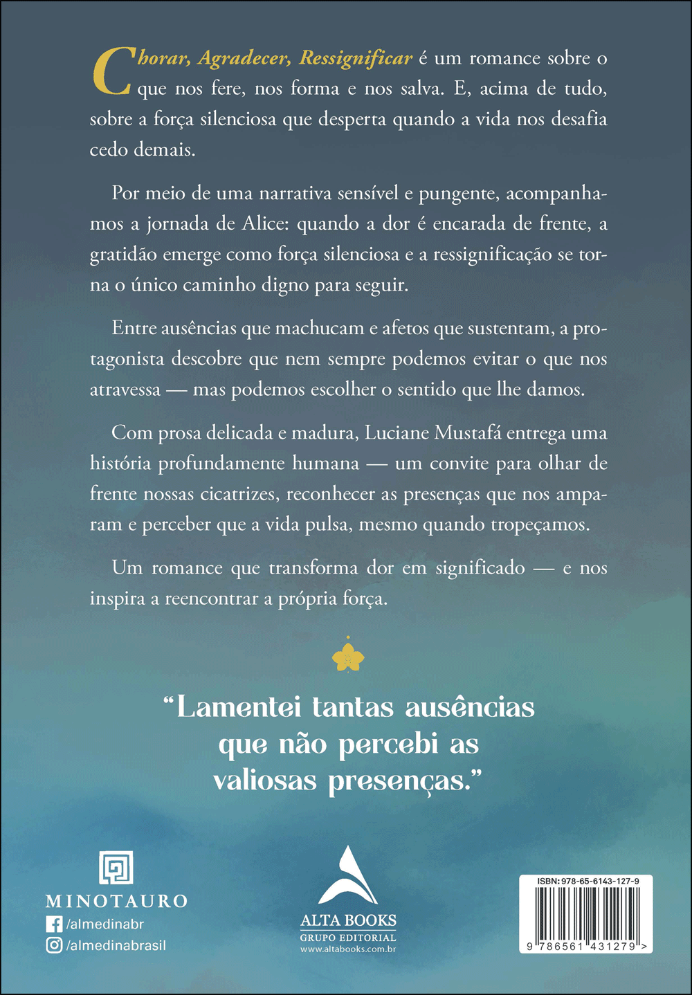 Chorar, Agradecer, Ressignificar é um romance sobre o que nos fere, nos forma e nos salva. E, acima de tudo, sobre a força silenciosa que desperta quando a vida nos desafia cedo demais.