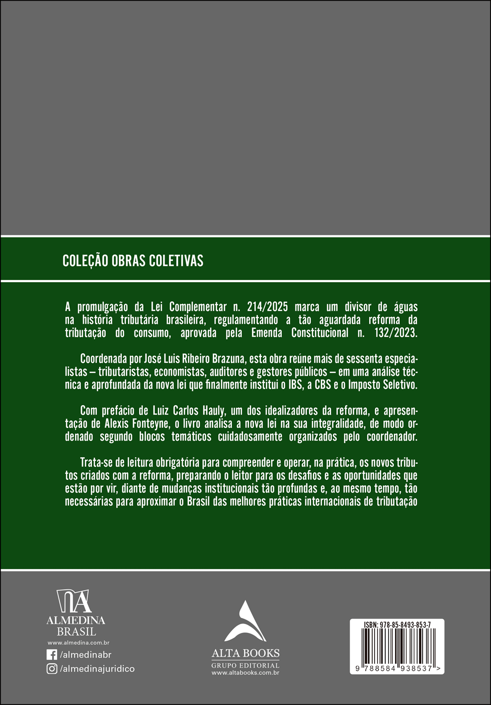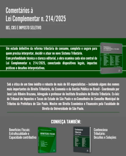 Coordenada por José Luis Ribeiro Brazuna, esta obra reúne mais de sessenta especia- listas — tributaristas, economistas, auditores e gestores públicos — em uma análise téc- nica e aprofundada da nova lei que finalmente institui o IBS, a CBS e o Imposto Seletivo.