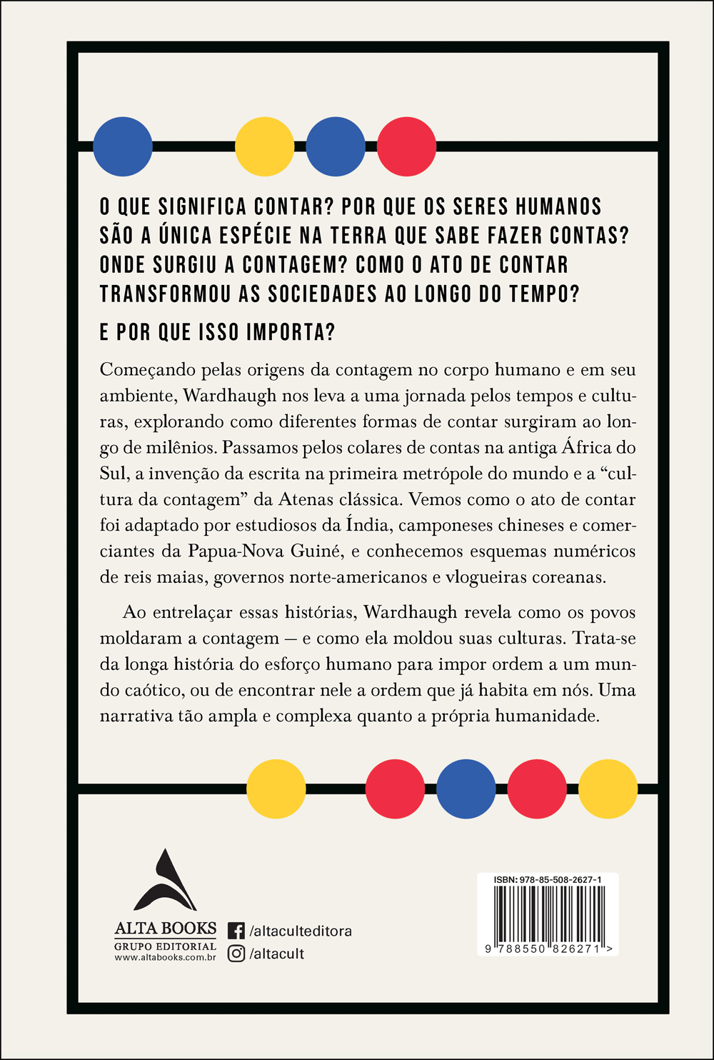 Começando pelas raízes da contagem no cérebro e corpo humano, e nos ambientes em que vivem, Wardhaugh nos guia em uma volta ao mundo através dos tempos explorando as diferentes vertentes da contagem que se desenvolveram ao longo de milênios. Conhecemos os fabricantes de colares de contas na antiga África do Sul, os inventores da escrita na primeira metrópole do mundo e a “cultura da contagem” na Atenas clássica. Descobrimos o ato de contar — e suas modificações — utilizado por estudiosos da Índia, camponeses da China e comerciantes da Papua-Nova Guiné, e aprendemos os diferentes esquemas numéricos de reis maias, governos norte-americanos e vlogueiras coreanas.