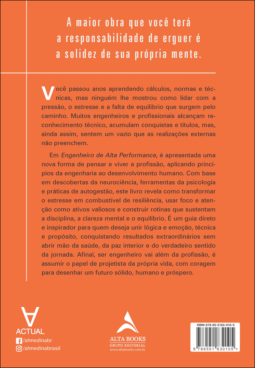 Em Engenheiro de Alta Performance, é apresentada uma nova forma de pensar e viver a profissão, aplicando princípios da engenharia ao desenvolvimento humano.