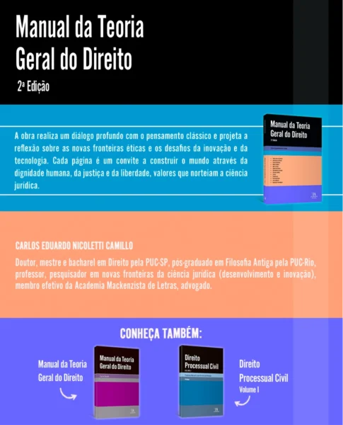 Além disso, propõe reflexões sobre os desafios contemporâneos impostos pelas inovações tecnológicas e pela complexidade das relações sociais. Um verdadeiro manual de Teoria Geral do Direito, que alia tradição e modernidade, ideal para estudantes, professores e profissionais que buscam compreender as bases e a evolução do pensamento jurídico.