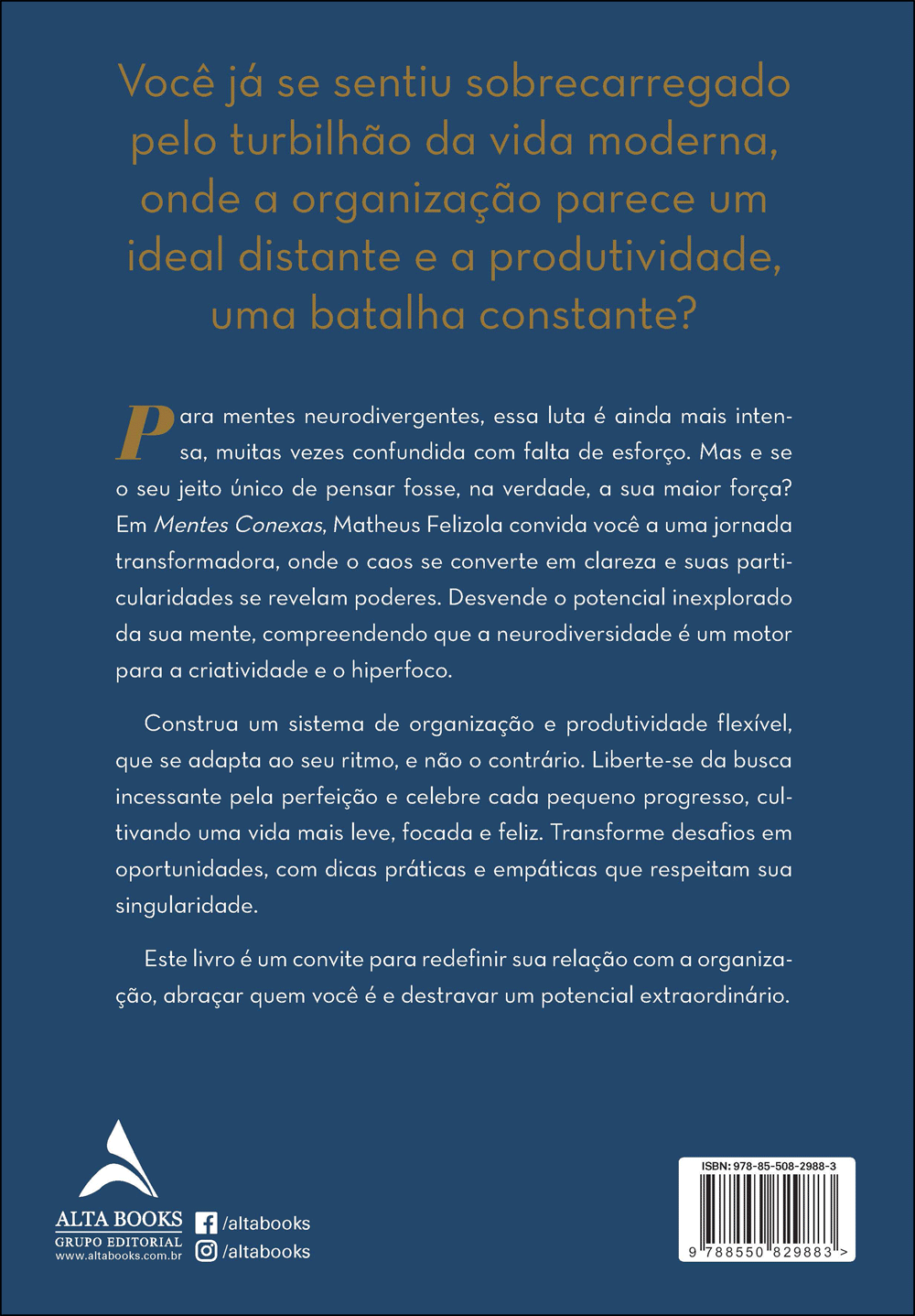 Para mentes neurodivergentes, essa luta é ainda mais intensa, muitas vezes confundida com falta de esforço. Mas e se o seu jeito único de pensar fosse, na verdade, a sua maior força? Em Mentes Conexas”, Matheus Felizola convida você a uma jornada transformadora, onde o caos se converte em clareza e suas particularidades se revelam poderes. Desvende o potencial inexplorado da sua mente, compreendendo que a neurodiversidade é um motor para a criatividade e o hiperfoco.