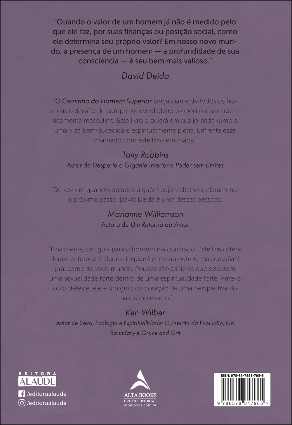 Com uma combinação de franqueza e profundidade espiritual, O Caminho do Homem Superior apresenta um guia essencial para o homem moderno que deseja alinhar propósito, relacionamentos e vida espiritual. David Deida oferece ensinamentos práticos sobre como viver com integridade, autenticidade e liberdade em meio às pressões da carreira, às demandas do amor e aos desafios da sexualidade.