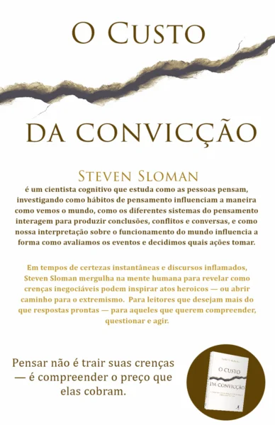 Com lucidez e coragem, o autor examina como as convicções moldam não apenas a política e a religião, mas também nossas relações, identidades e escolhas cotidianas. Entre a razão e a fé, o conhecimento e a ideologia, Sloman revela que as certezas que nos sustentam podem, ao mesmo tempo, nos aprisionar.