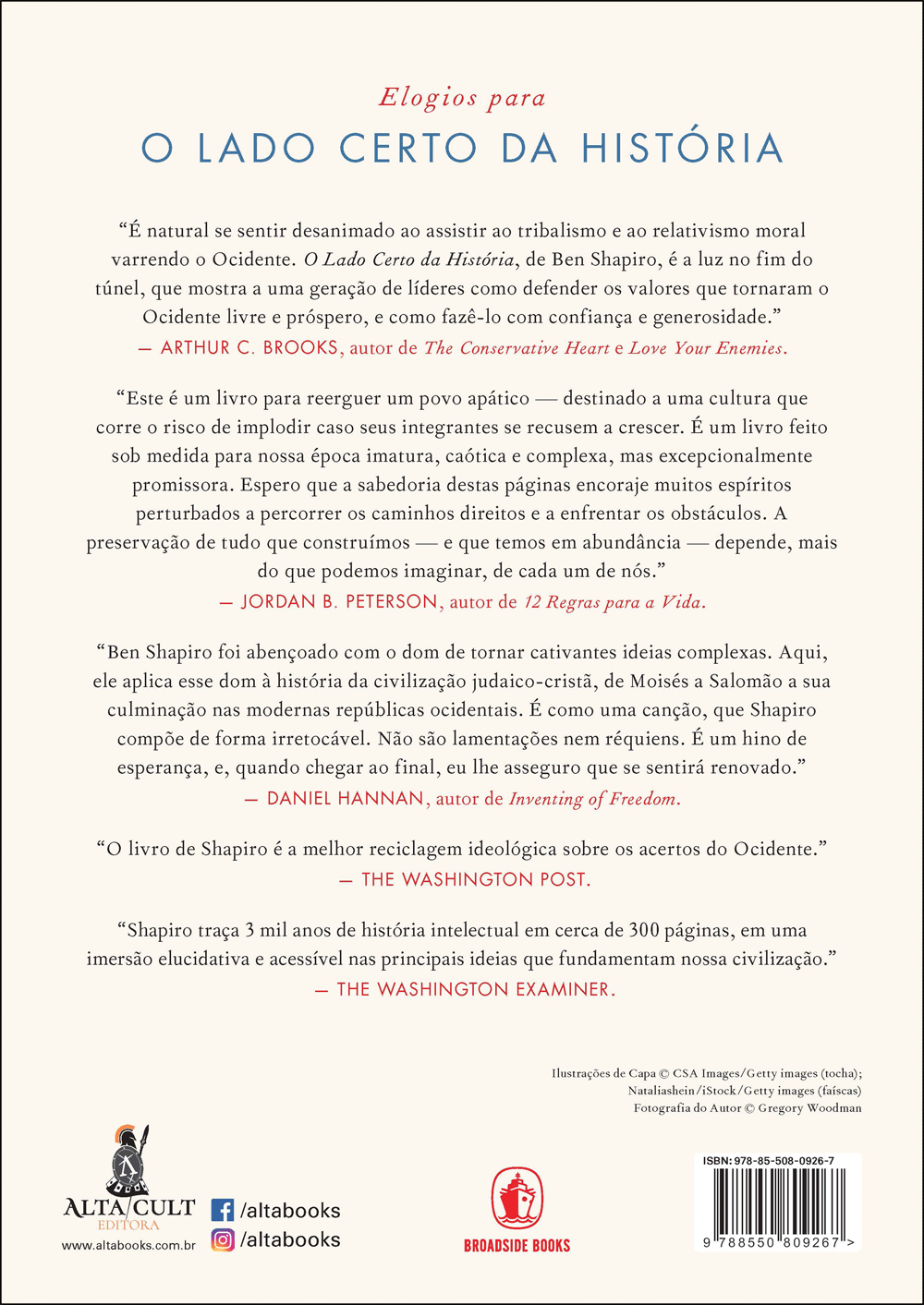 “É natural se sentir desanimado ao assistir ao tribalismo e ao relativismo moral varrendo o Ocidente. O Lado Certo da História, de Ben Shapiro, é a luz no fim do túnel, que mostra a uma geração de líderes como defender os valores que tornaram o Ocidente livre e próspero, e como fazê-lo com confiança e generosidade.” — ARTHUR C. BROOKS, autor de The Conservative Heart e Love Your Enemies.