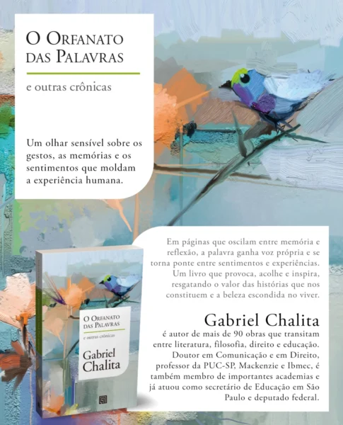 Eis um livro sobre a palavra — sobre sentimentos, sobre orfandades, também. Em crônicas nascidas de observações do fascinante viver, a filosofia da crença na humanidade vai dizendo as histórias e oferecendo valores. Algumas se aproximam do estilo do conto. Quase um pequeno romance. Outras são respiros do dia.