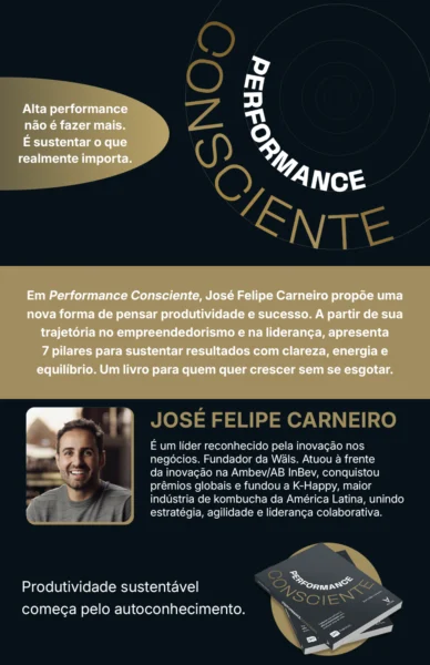 Performance Consciente não foi escrito para ensinar alguém a fazer mais. Foi escrito para ajudar pessoas a fazerem melhor. Com mais presença. Mais intenção. Mais domínio sobre o próprio tempo e sobre a própria mente.