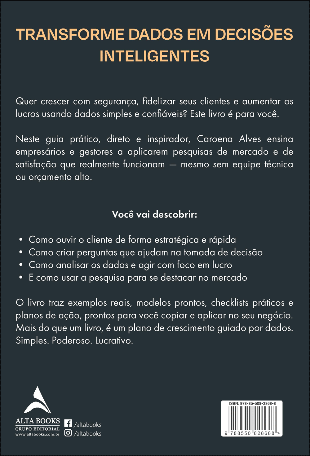 Pesquisa Que Dá Lucro é um livro inédito no mercado editorial brasileiro que ensina, de forma prática e acessível, como transformar dados de pesquisa em estratégia de crescimento. Com base em quase 20 anos de experiência da autora no mercado de pesquisa e análise de dados, o livro oferece um passo a passo completo para aplicar pesquisas de mercado e de satisfação de forma ética, eficaz e rentável. A linguagem é leve, direta e voltada à ação, sem abrir mão do rigor metodológico. A obra traduz a teoria em prática com exemplos reais, checklists, atividades, gráficos e orientações que permitem ao leitor aplicar imediatamente o conhecimento adquirido em sua própria realidade de negócio.