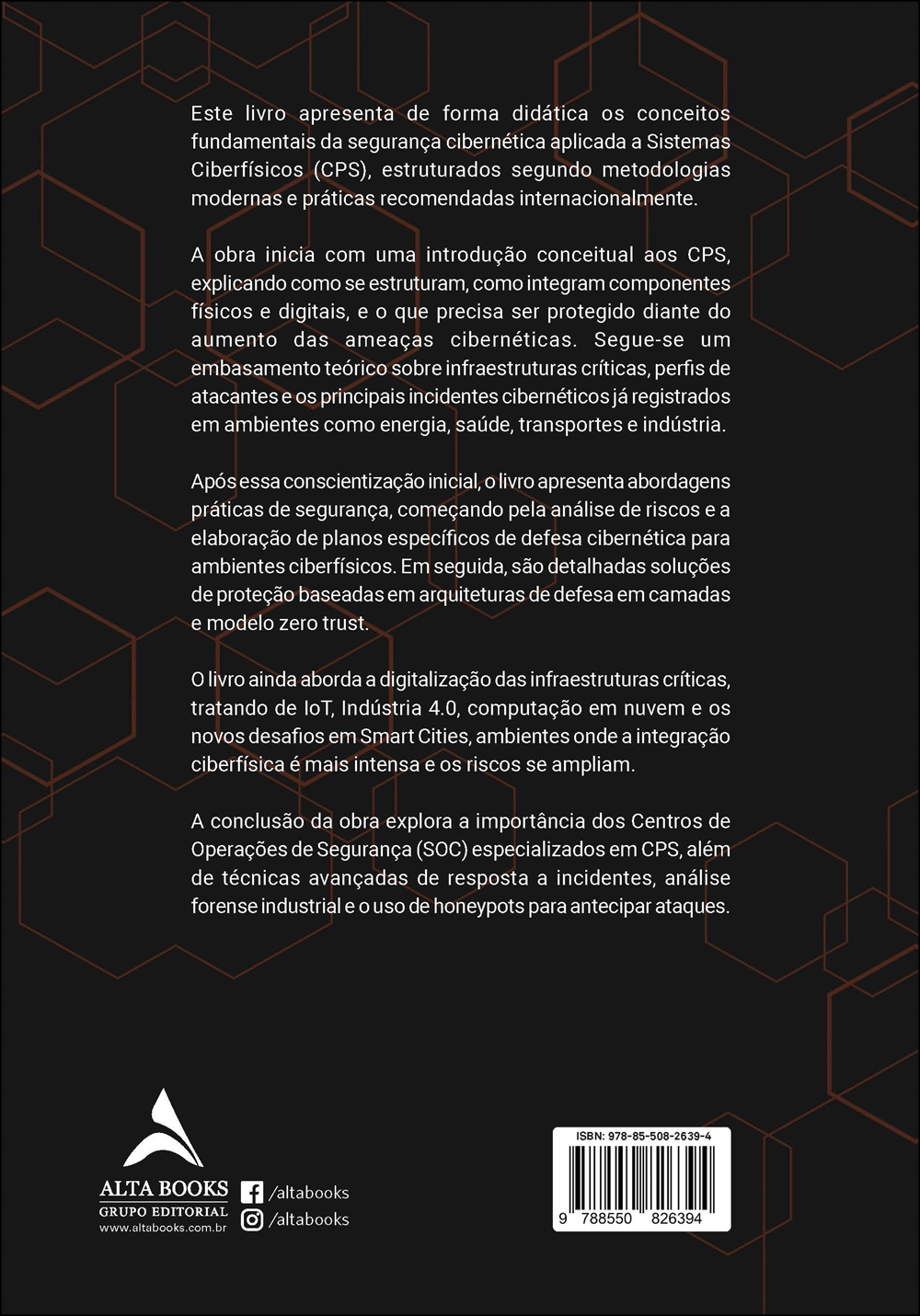 Com base em normas (IEC 62443, NIST SP 800‑82) e casos práticos, os autores mapeiam riscos e controles em dispositivos, redes, aplicações e identidades, além de estratégias de SOC, monitoramento contínuo e resposta a incidentes. Uma visão clara das tecnologias emergentes (IA, edge, digital twins) e do futuro da segurança em CPS.